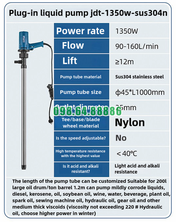Công Suất Mạnh Mẽ 1350W Của Máy Bơm Hút Thùng Phuy Cắm Điện JDT-1350W-SUS304N Có Gì Đặc Biệt?