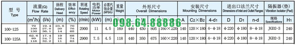 Máy bơm trục thẳng đứng, bơm đường ống, bơm lùa ISG100-125, IRG100-125 11kw, 100m3, 20m