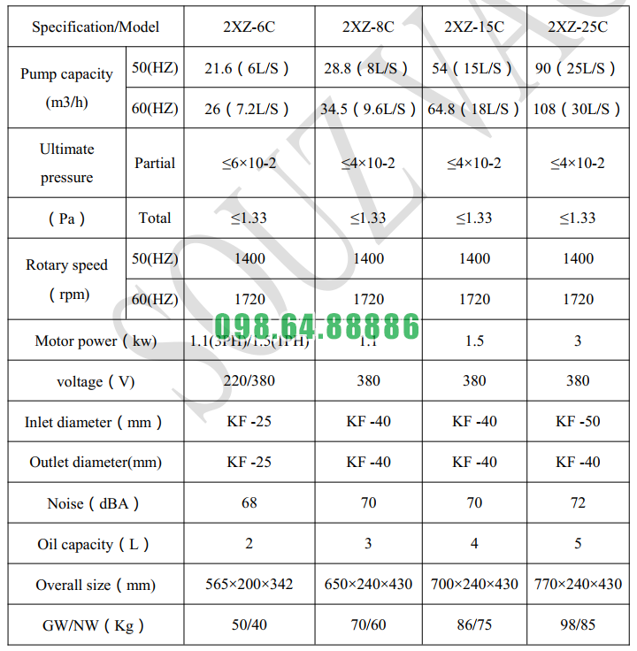 Cấu tạo chi tiết bơm chân không dạng cánh trượt model 2XZ-15C động cơ 1.5 kW