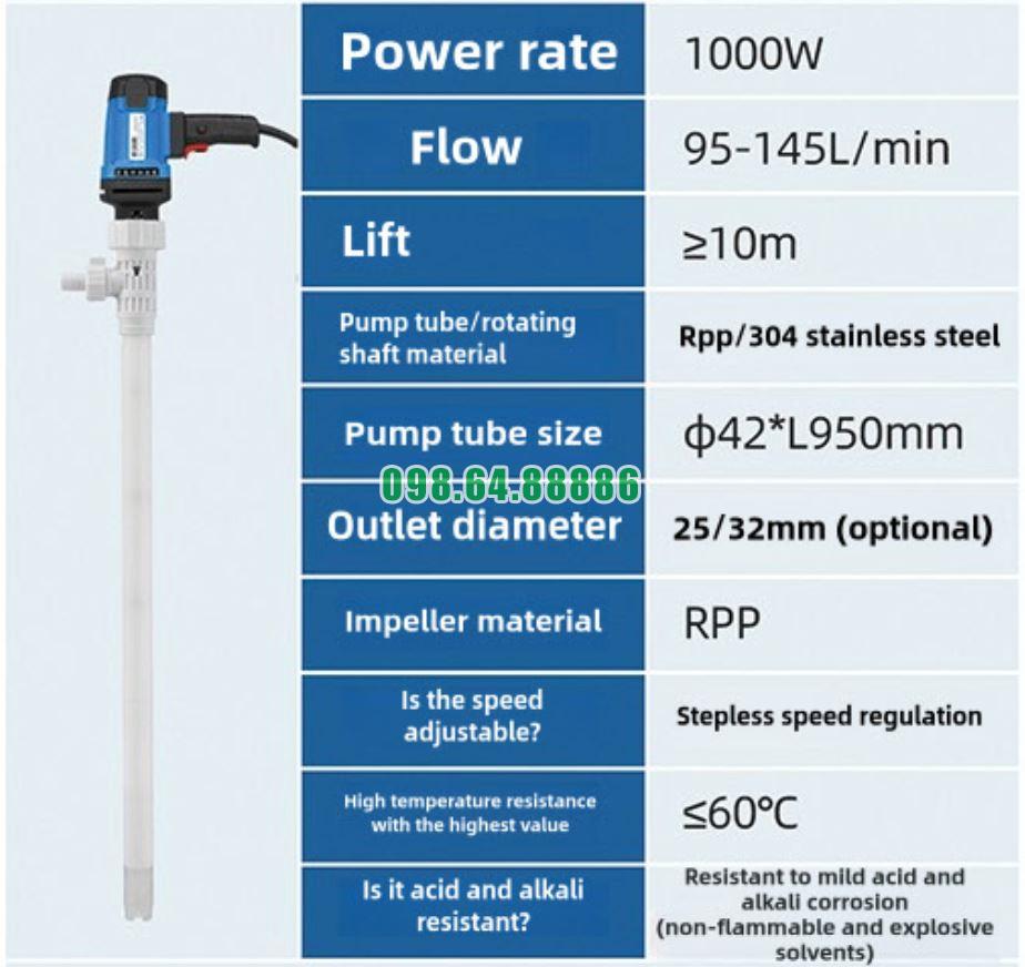 Khả năng đáp ứng đa dạng công việc của Bơm cắm điện thùng phuy model JDT-1000W-PVDF giúp thiết bị trở thành giải pháp linh hoạt, hiệu quả và tiết kiệm cho nhiều doanh nghiệp trong các lĩnh vực khác nhau.