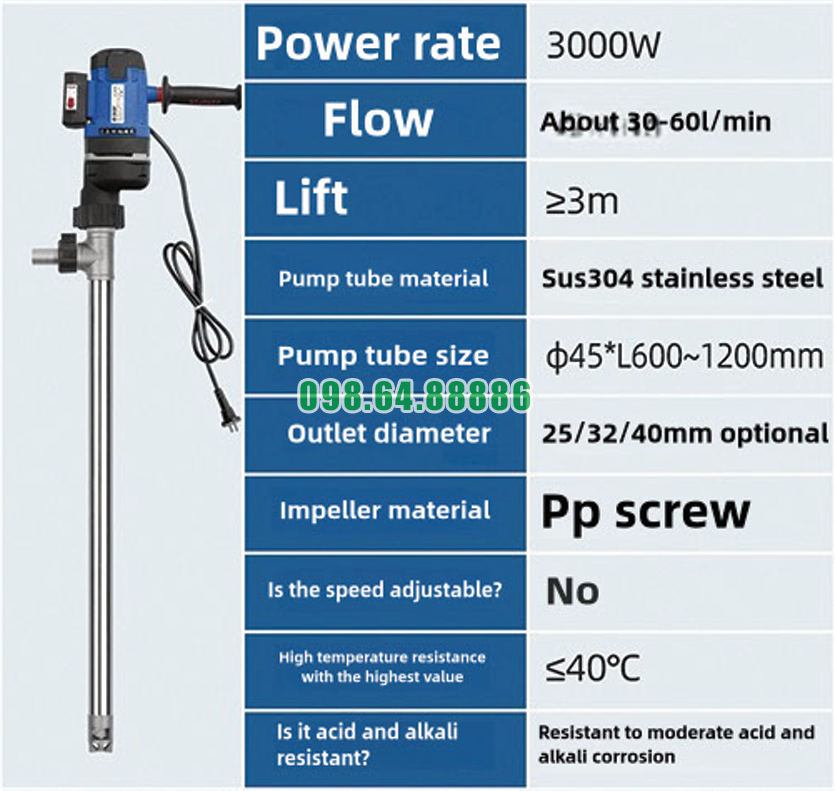 Bơm trục cong điện hút phuy 160 – JDT-3000W-LG giúp tiết kiệm thời gian chiết rót