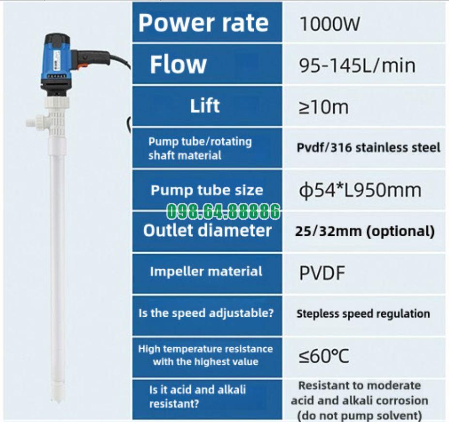 Bơm rút dầu thùng phuy model JDT-1000W-PVDF