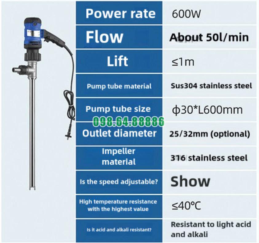 Bơm thả chìm ống inox di động model JDT-600W-30SUS304