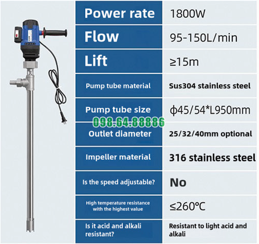 Hiệu suất làm việc đáng kinh ngạc của Bơm thùng phuy lỏng nhiệt độ cao JDT-1800W-G260
