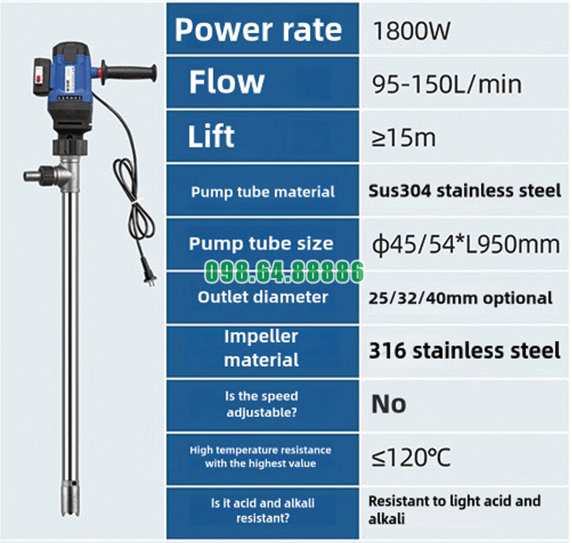 Thông số Bơm điện chất lỏng cắm điện JDT-1800W-L92