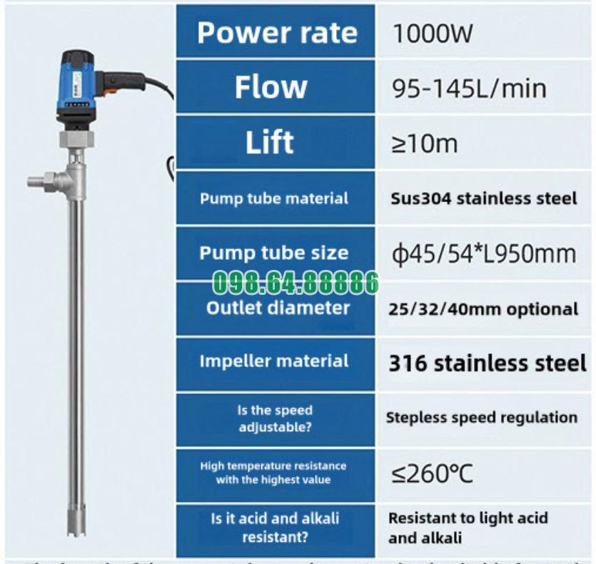 Với thiết kế gọn nhẹ, tay cầm tiện dụng, cấu trúc module dễ bảo trì và giao diện điều khiển thân thiện, Máy bơm thùng phuy inox SUS304/316 JDT-1000W-G260 là thiết bị vừa mạnh mẽ vừa dễ sử dụng, mang lại hiệu quả vận hành cao và trải nghiệm thuận tiện trong mọi môi trường công nghiệp.
