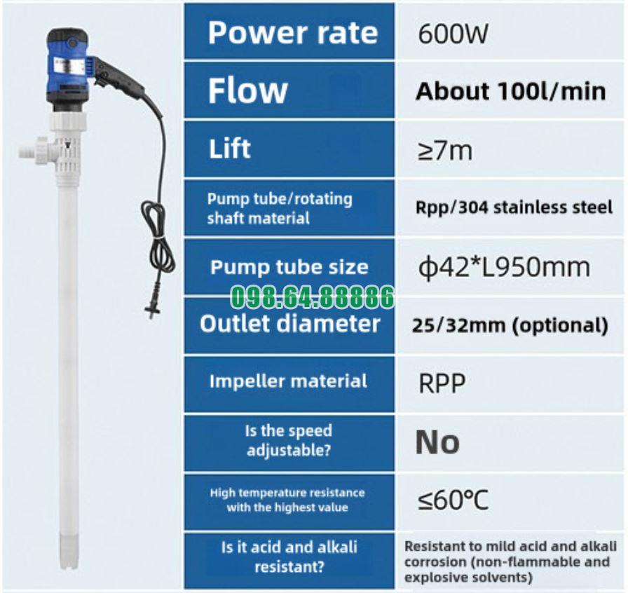 Máy bơm điện nhúng chất lỏng JDT-600W-RPP được thiết kế chuyên dụng cho vận hành liên tục 24/7, với các yếu tố hỗ trợ như: