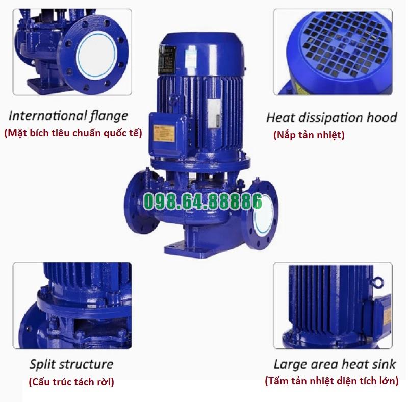 Máy bơm đường ống trục đứng, bơm tăng áp, bơm inline ISG80-160, IRG80-160 7.5kw