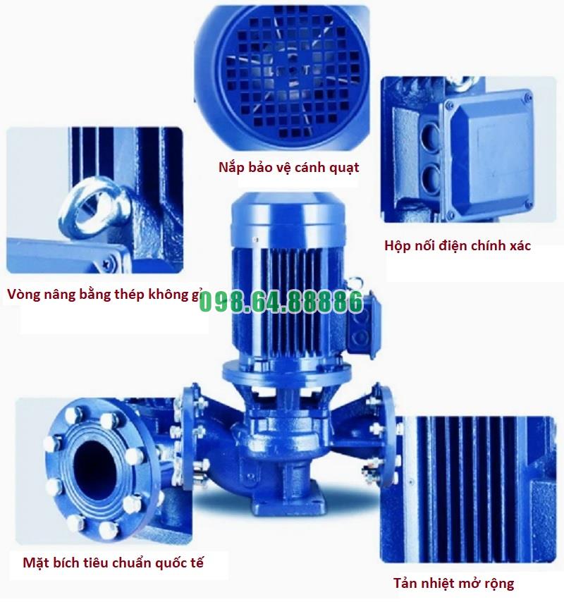 Máy bơm lùa, bơm inline, bơm cấp nước trục đứng ISG80-160A, IRG80-160A 7.5kw, 46.8m3, 13m