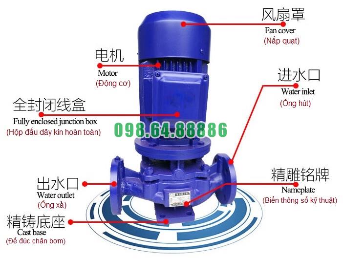 Máy bơm ly tâm trục đứng, bơm inline, bơm tăng áp model ISG80-315A, IRG80-315A 37kw, 50m3, 125m